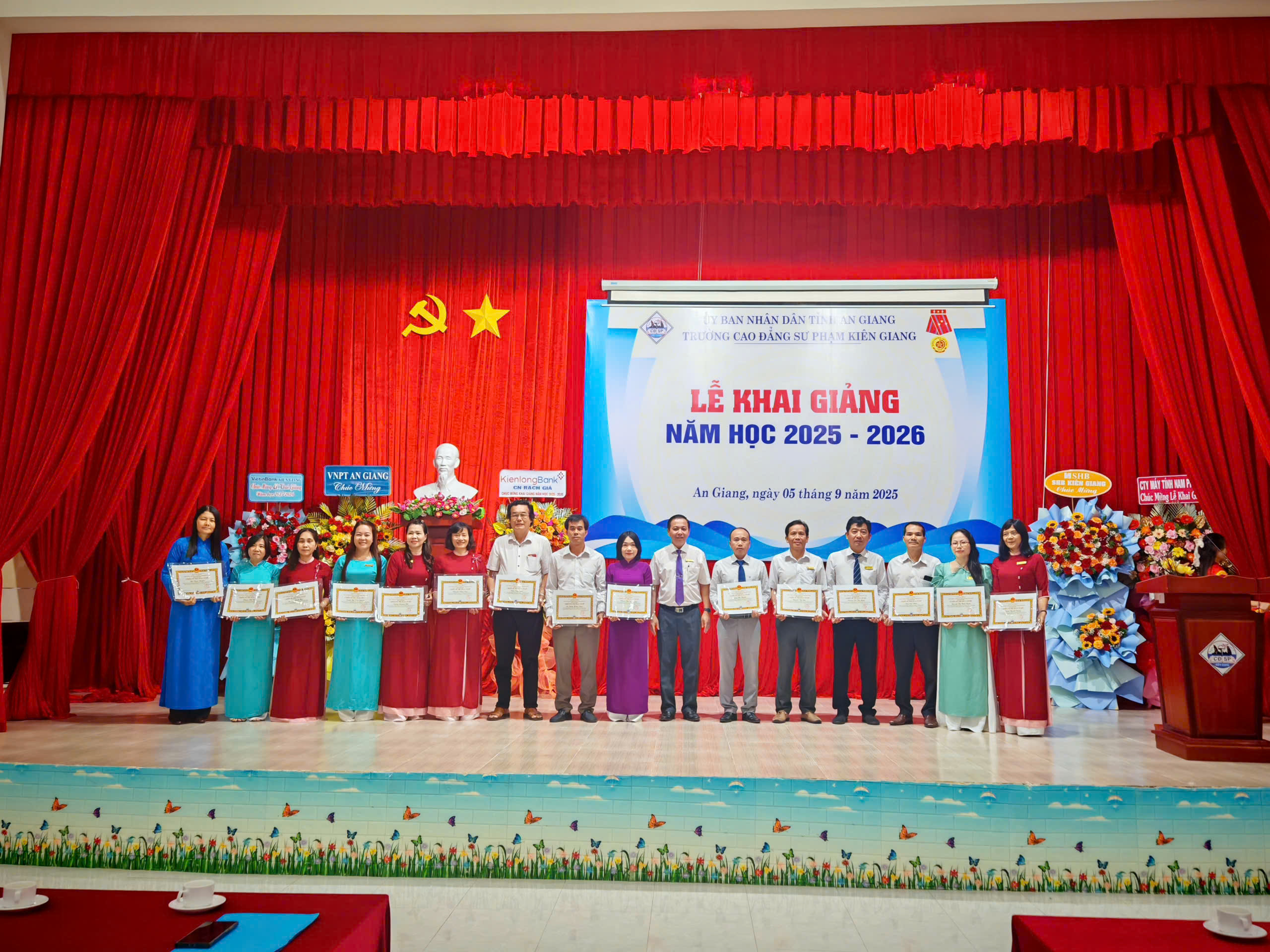 Sáng 05/9, tại Hội trường, Trường CĐSP Kiên Giang tổ chức Lễ khai giảng năm học 2025 - 2026. Sau khi theo dõi Lễ kỷ niệm 80 năm thành lập Bộ Quốc gia Giáo dục (nay là Bộ Giáo dục và Đào tạo) và khai giảng năm học mới do Bộ Giáo dục và Đào tạo tổ chức bằng hình thức trực tuyến, Trường tổ chức các hoạt động của trường.